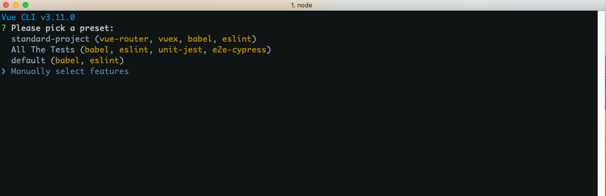 Select “Manually select features” and click enter so that we can be explicit about which libraries we want to include in our new project.